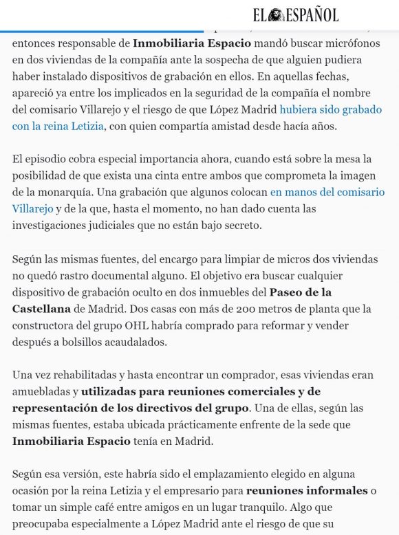 Si recurrimos a la hemeroteca, podemos comprobar como medios que han publicado las informaciones sobre los asuntos ‘turbios’ del emérito como El Español o El Confidencial, hablaban hace dos años de la preocupación de López Madrid por si el exComisario le hubiera hecho grabaciones hablando con la actual reina Letizia.