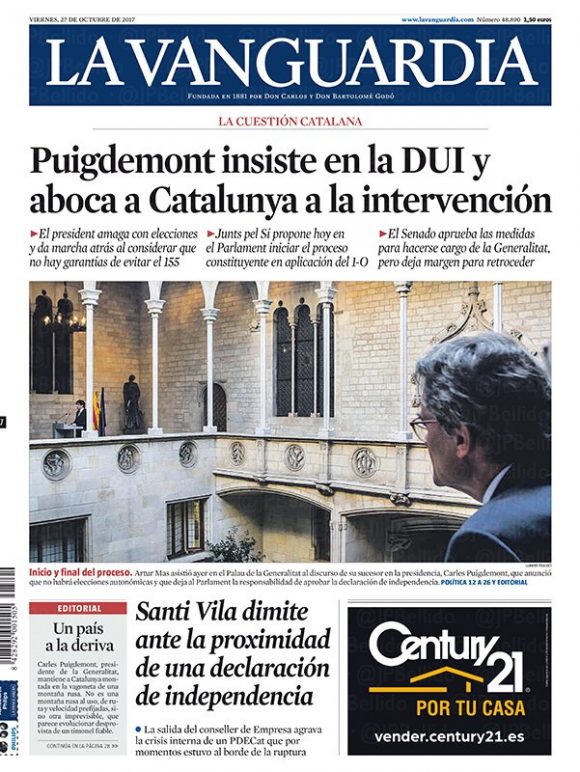 Portadas de prensa del viernes 27 de Octubre de 2018: