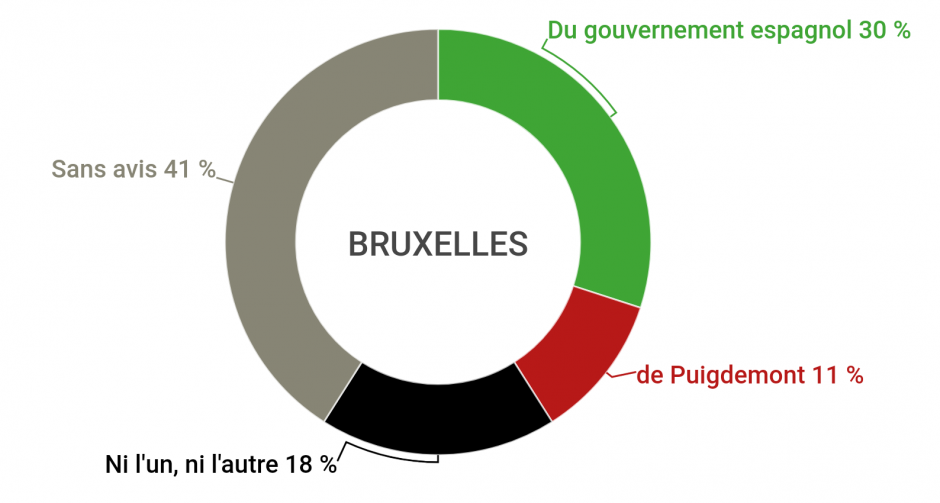 Como parte de un macrosondeo realizado por Ipsos y otros entre la población de Bélgica, se ha preguntado a los ciudadanos por su opinión sobre la situación catalana y, en concreto, si en el conflicto abierto se ponen del lado del depuesto gobierno de Puigdemont o de parte del gobierno español.
