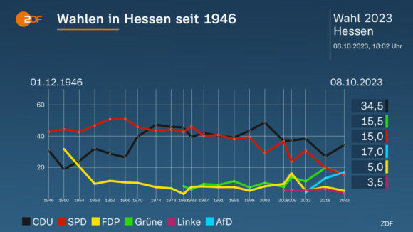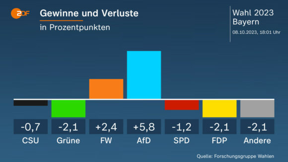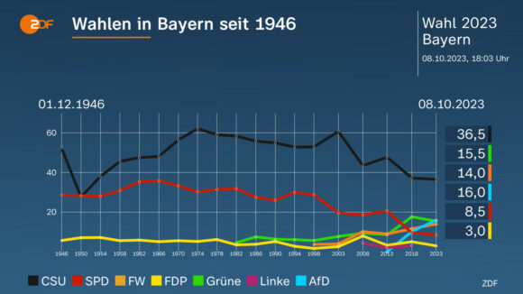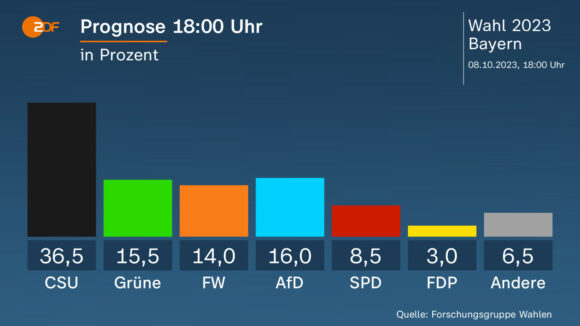 Exit Polls publicadas para las elecciones en los estados de Hesse y Baviera muestran una victoria clara de la CSU/CDU, con una segunda posición más disputada.