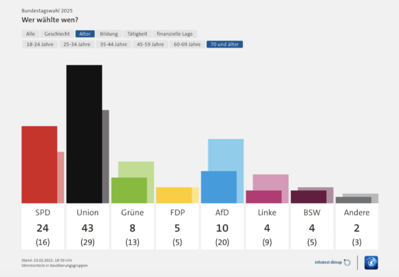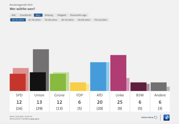 Uno de los aspectos más significativos de estos comicios ha sido la disparidad en el comportamiento electoral entre los votantes jóvenes y los mayores. Mientras que los votantes de entre 18 y 24 años han mostrado un fuerte respaldo a Die Linke (25%) y a AfD (20%), los mayores de 70 años han apostado mayoritariamente por la CDU/CSU (43%) y el SPD (24%). Este patrón refleja una polarización generacional, donde los jóvenes urbanos tienden a optar por partidos de izquierda radical o de protesta, mientras que los votantes de mayor edad, especialmente en zonas rurales, se inclinan por fuerzas tradicionales.