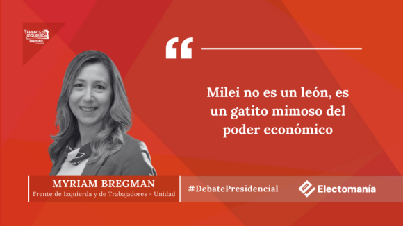 - Myriam Bregman (Frente de Izquierda y Trabajadores Unidad), de izquierda. La diputada nacional es una dirigente de la izquierda radical. Sus propuestas se centran en la redistribución de la riqueza, la defensa de los derechos humanos y la construcción de un socialismo democrático.