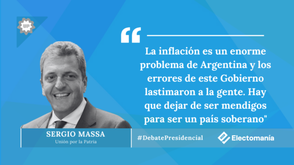 - Sergio Massa (Unión por la Patria), de centroizquierda-oficialista. El actual presidente de la Cámara de Diputados es un dirigente político con una larga trayectoria en el peronismo. Sus propuestas se centran en la reactivación económica, la creación de empleo y la mejora de la educación.