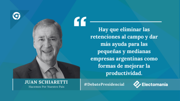 El peronista Juan Schiaretti apostó por la eliminación de las retenciones al campo y ofrecer mayores coberturas a pequeñas y medianas empresas argentinas como formas de mejorar la productividad.
