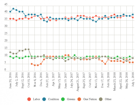 El 2 de julio de 2016 los conservadores de la Coalición Liberal-Nacional ganaron por un estrecho margen de 0,7%. Desde entonces las encuestas reflejan estabilidad manteniendo el empate con mínima ventaja Laborista.
