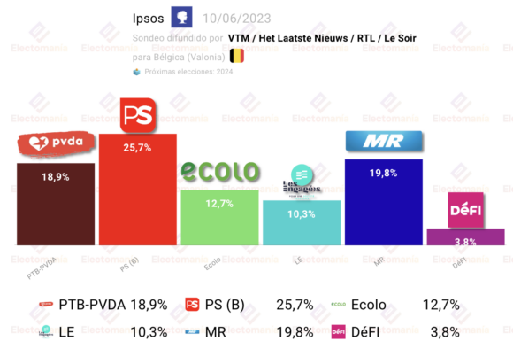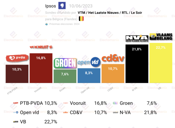 Sondeo para elecciones federales en Bélgica, publicado en las últimas horas, con el clásico desglose por territorios: