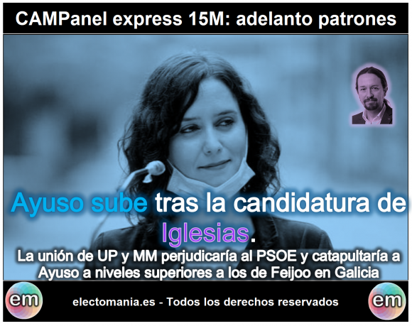 Beneficios exclusivos: Acceso completo: adelanto de los paneles horas antes de su publicación en abierto, panel para generales: (desglose de escaños y voto por provincias y partidos, mapa del partido ganador por provincias), electoPanel autonómico quincenal exclusivo, sección exclusiva para Patrones en El Foro y electoPanel especial VIP mensual exclusivo.