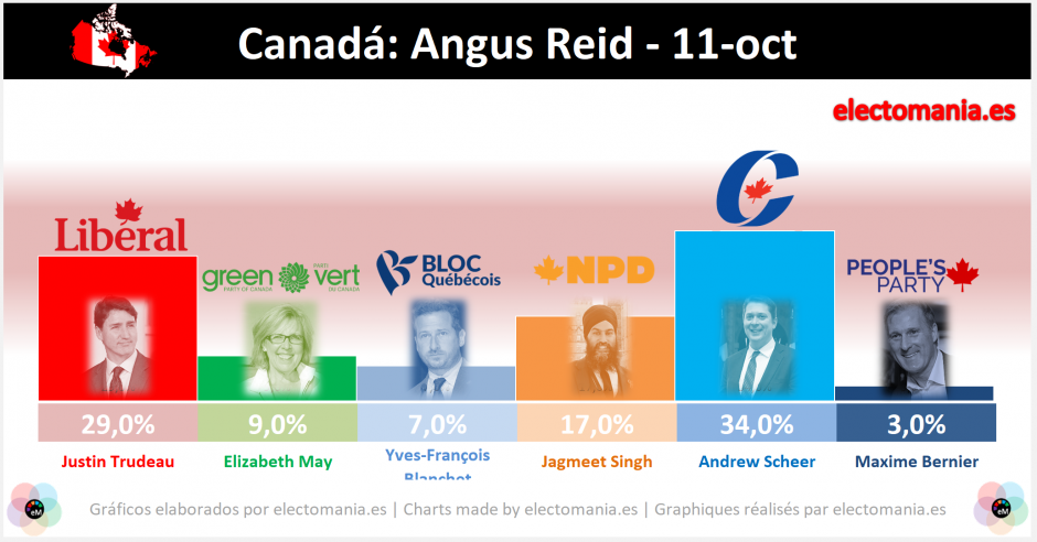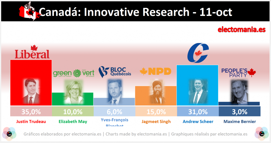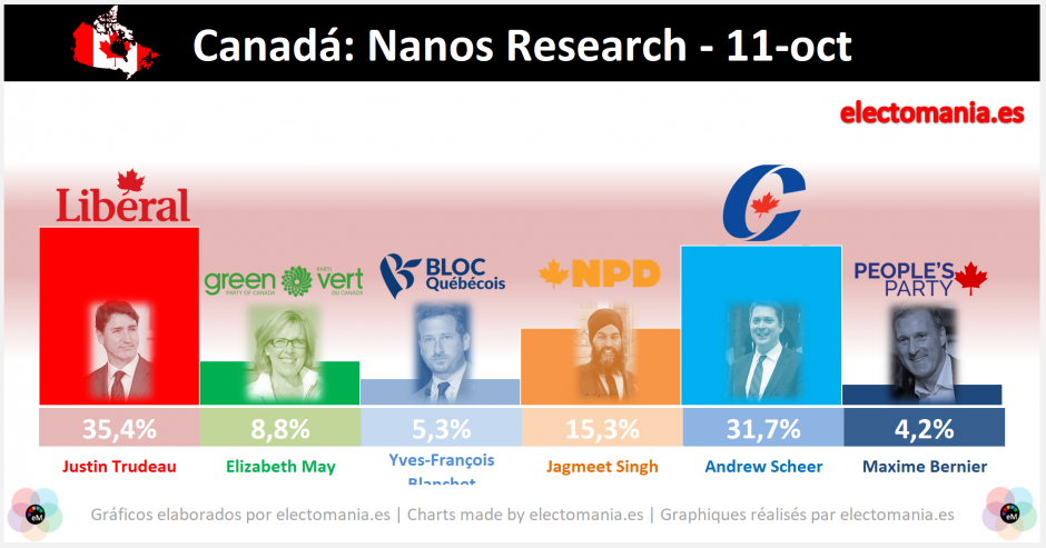 En 9 días se celebrarán elecciones en Canadá y los sondeos siguen mostrando una situación de empate técnico aunque se observa un leve avance de los conservadores.