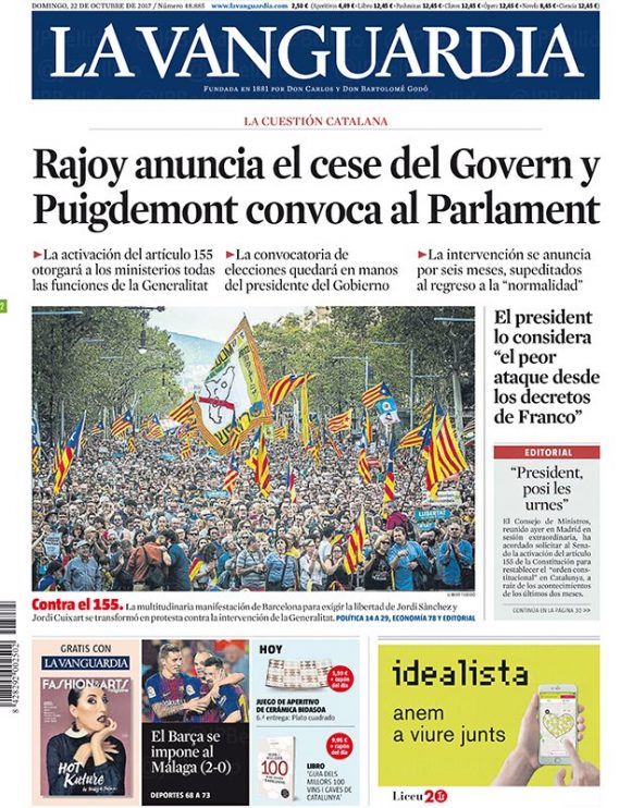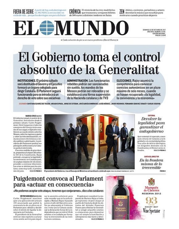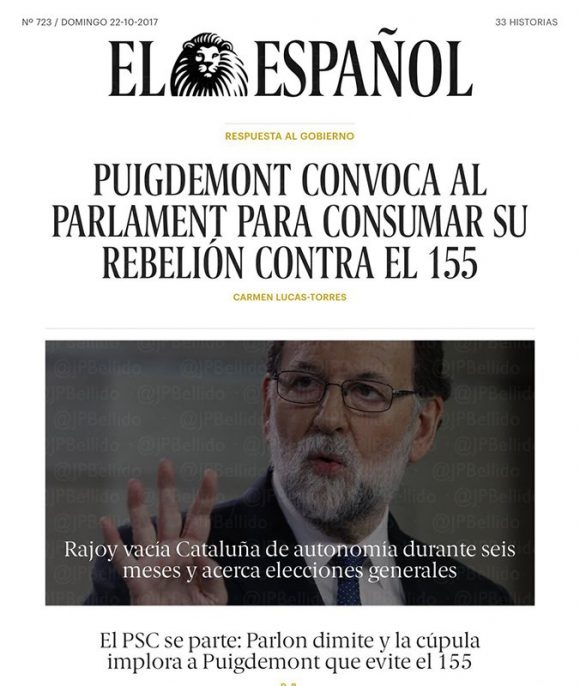 Cataluña: estos son los titulares de la prensa tras el 155.