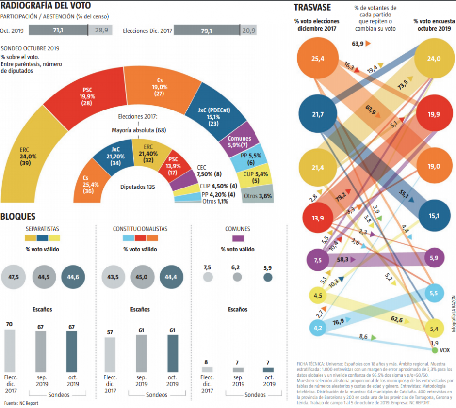 Encuesta de NC Report que publica hoy La Razón, para las futuras elecciones autonómicas en Cataluña.