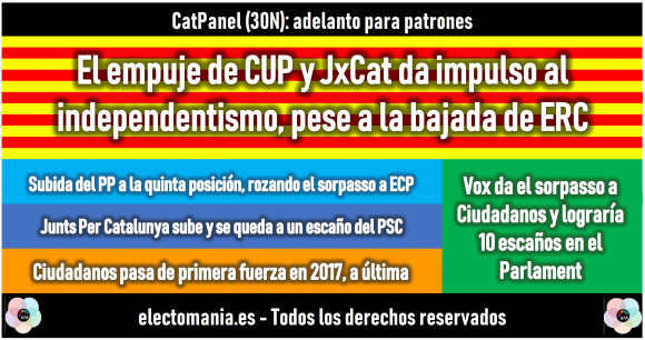 Beneficios exclusivos: Acceso completo: adelanto de los paneles horas antes de su publicación en abierto, panel para generales: (desglose de escaños y voto por provincias y partidos, mapa del partido ganador por provincias), electoPanel autonómico quincenal exclusivo, sección exclusiva para Patrones en El Foro y electoPanel especial VIP mensual exclusivo.