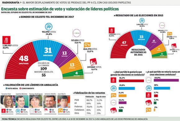Sondeo dd Celeste-Tel para autonómicas en Andalucía publicado por la Opinión de Málaga: