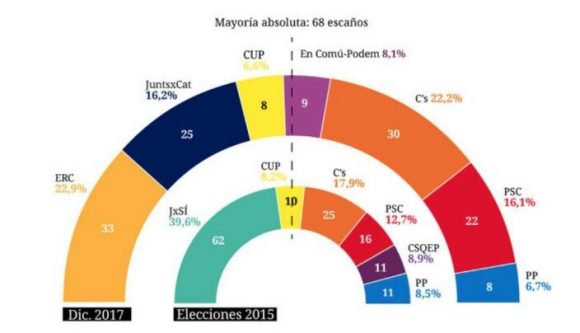 Celeste-Tel: triple empate ERC-Cs, JxC-PSC, CUP-PP.