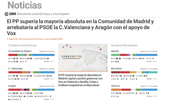 Las urnas ya han cerrado y se comienzan a conocer los primeros datos de los sondeos a cierre de urna (GAD3 para la Forta, rtve, etc).