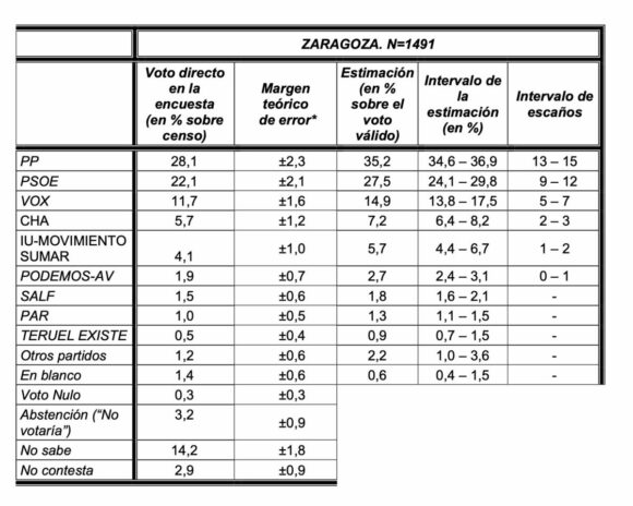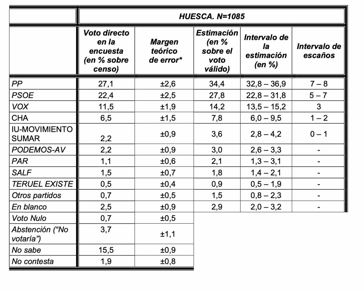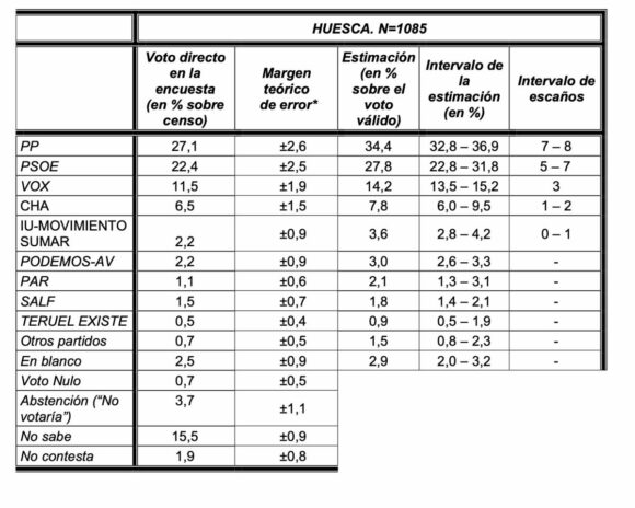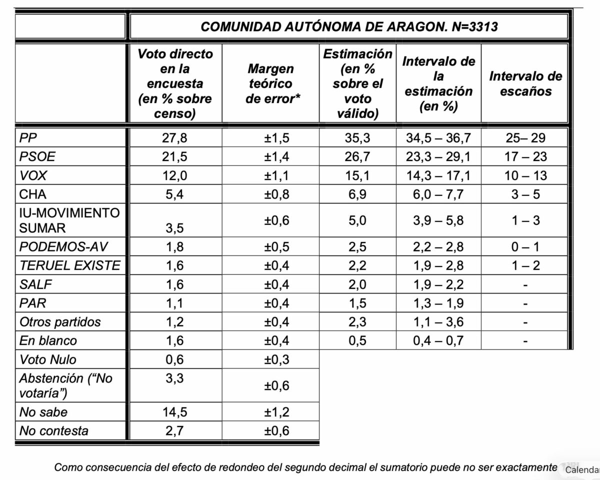 Barómetro autonómico del CIS para elecciones autonómicas en Aragón, con estimación de voto y escaños del organismo público: