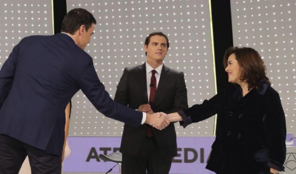Sin capacidad de reacción, ensimismado por el triunfo en Catalunya, se dejó que la deriva continuara, confiando todo al tirón del líder. No se hizo hincapié sistemáticamente en los temas fuertes (corrupción, reformas estructurales, renovación democrática profunda) y el mensaje se diluyó, confundido entre el del PSOE y el del PP. Quedó claro finalmente para los electores indecisos, que ese partido era una parte de la casta, y no una alternativa frente a ella. Justo en ese momento llegó para Albert Rivera el famoso debate a cuatro de la mitad de la campaña electoral. Apareció en él como uno más de los de la