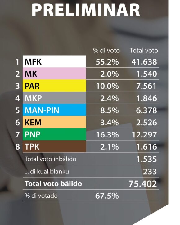 Las elecciones en Curazao han dejado un resultado claro e inapelable: el partido Movementu Futuro Kòrsou (MFK) se impone de forma contundente con el 55,2% de los votos válidos, asegurando así una mayoría absoluta en el parlamento insular.