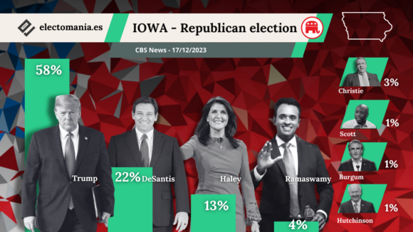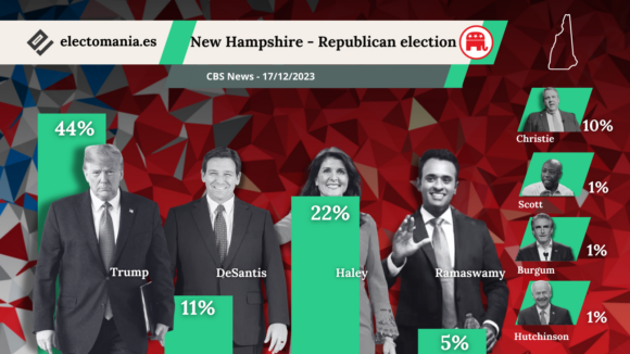 Sondeo para elecciones a la carrera del Partido Republicano apunta a una clara ventaja de Trump y una disputada segunda posición entre DeSantis y Haley.