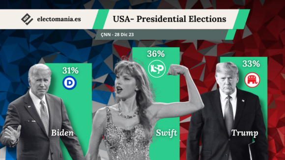 - Pensylvania: Swifties Party 42%, Demócratas 33%, Republicanos 25%