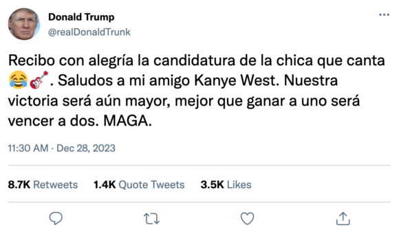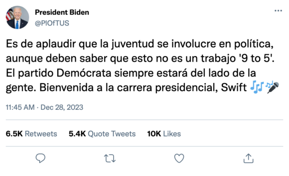 Por su parte, el actual Presidente y probable candidato demócrata , Joe Biden , le ha deseado suerte pero con un despiste.