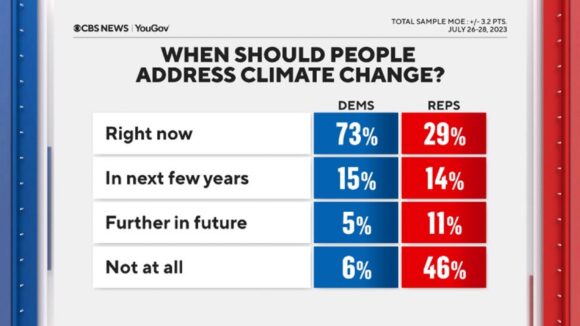 La última encuesta de YouGov difundida por CBS News en Estados Unidos muestra una amplia división de opiniones al respecto del cambio climático.