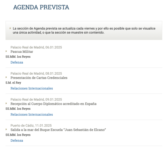 Felipe VI y el presidente Pedro Sánchez hablaron de esas actividades esta misma semana y, según el Gobierno, ambos “han podido constatar su alineamiento al respecto”.