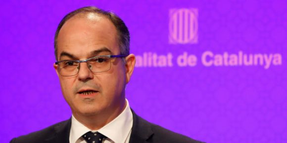 Catalan Government Presidency Councillor Jordi Turull speaks during a news conference after a cabinet meeting at the regional government headquarters in Barcelona