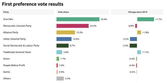 Finalizado el recuento de las elecciones locales en Irlanda del Norte el Sinn Féin se consolida como principal fuerza política y logra romper el dominio unionista en el Uslter tras décadas de mayorías pro-Reino Unido.