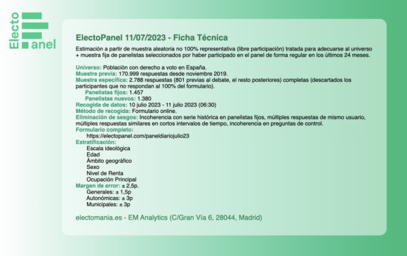 ElectoPanel para generales, ofrecido a diario y con acceso al desglose completo de voto y escaños por provincias para patrones, y en abierto en días alternos con acceso a los datos por bloque.