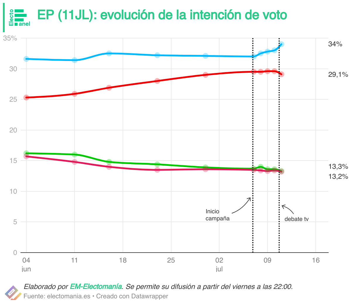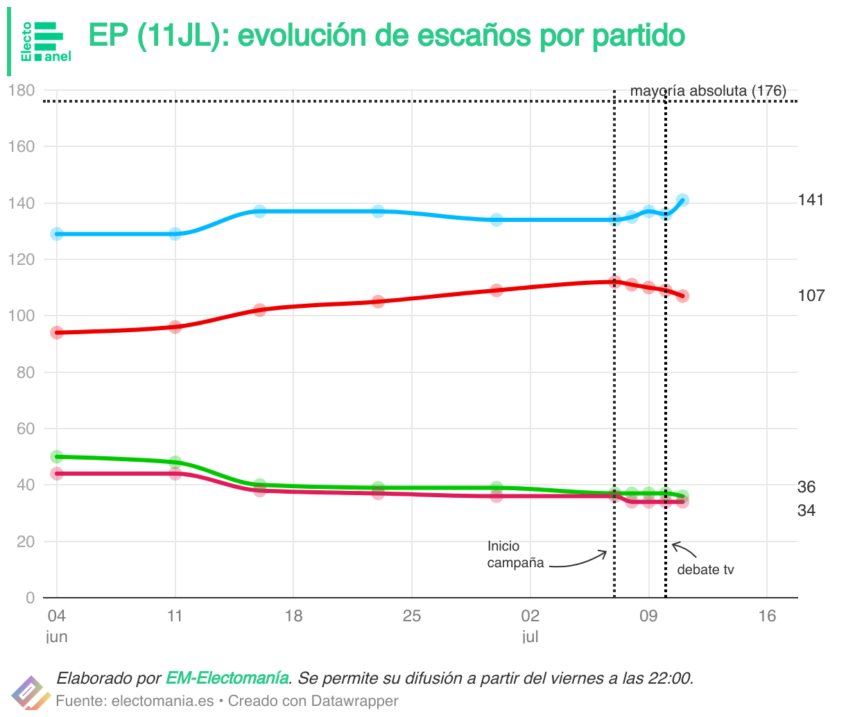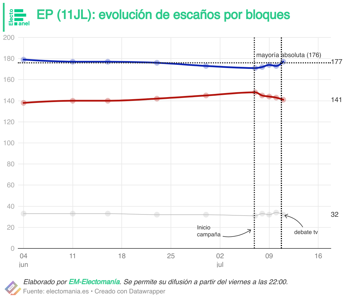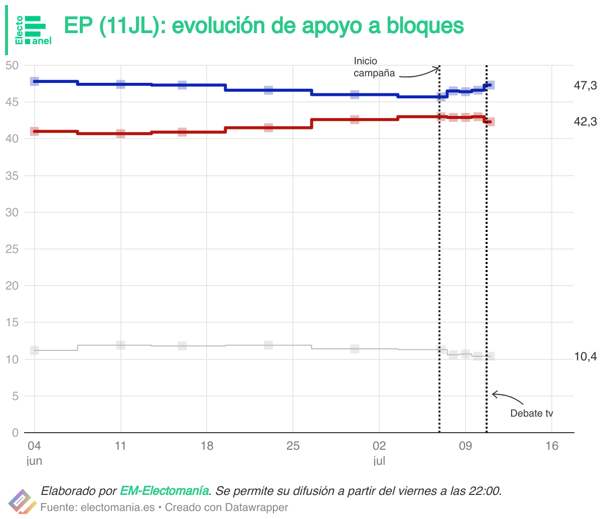 ElectoPanel para generales, ofrecido a diario y con acceso al desglose completo de voto y escaños por provincias para patrones, y en abierto en días alternos con acceso a los datos por bloque.