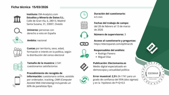 Adelanto del ElectoPanel para elecciones generales, que apunta a una reducción de la distancia entre PP y PSOE, a menos de 2 puntos, con un fuerte repunte de Vox, que supera de nuevo el 20% de apoyos.