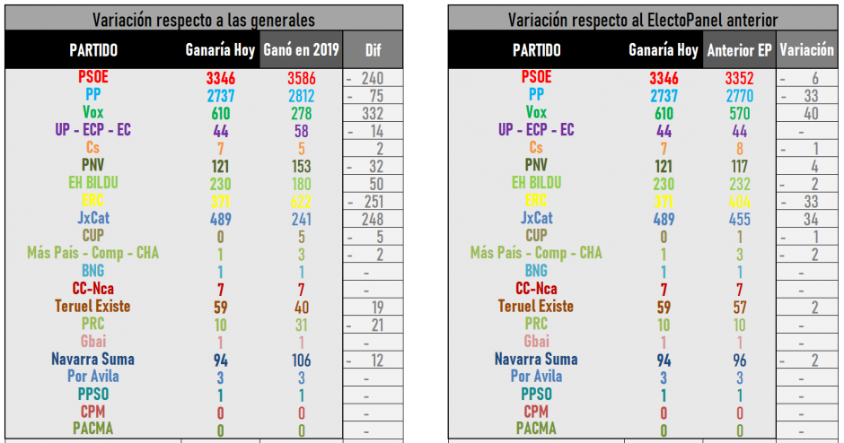 ElectoPanel semanal para generales, en adelanto para patrones (os recordamos que no se debe compartir el contenido del panel).