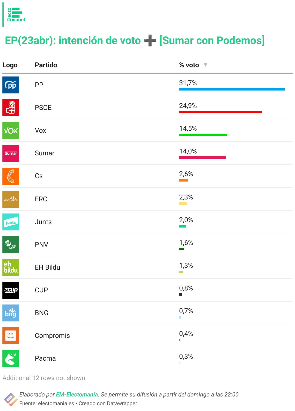 ElectoPanel semanal para elecciones generales, difundido parcialmente en abierto.