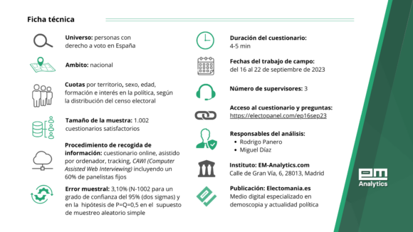 ElectoPanel semanal para generales, ofrecido en exclusiva para patrones y que se publicará parcialmente en abierto este domingo.