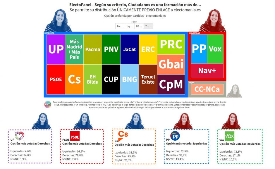 ElectoPanel (2N): para los españoles Ciudadanos es un partido de derechas (pero no todos los partidos piensan así)