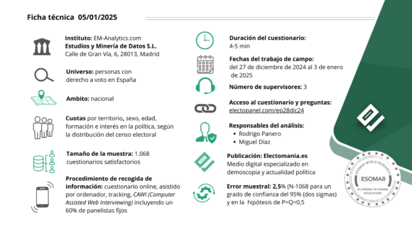 Primer ElectoPanel del año 2025, muestra un escenario similar a las semanas pasadas, en el que la suma de PP y Vox sumaría mayoría absoluta.