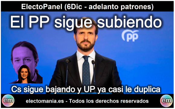 Beneficios exclusivos: Acceso completo: adelanto de los paneles horas antes de su publicación en abierto, panel para generales: (desglose de escaños y voto por provincias y partidos, mapa del partido ganador por provincias), electoPanel autonómico quincenal exclusivo, sección exclusiva para Patrones en El Foro y electoPanel especial VIP mensual exclusivo.