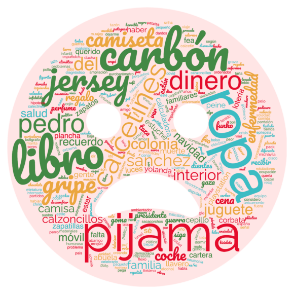 Destacan una serie de elementos que podrían ser considerados como regalos poco deseables o “peores” el día de Reyes en España. Algunas palabras como “calcetines”, “jersey” y “camiseta” son típicos presentes que aunque útiles, pueden ser vistos como poco emocionantes o demasiado prácticos. Por otro lado, términos como “gripe” y “muerte” hacen referencia a malas experiencias en estas fechas.