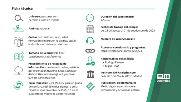 La última encuesta de EM-Analytics para Electomania.es señala que Pedro Sánchez tiene un alto grado de probabilidad de ser investido presidente del Gobierno de España, superando claramente a Alberto Núñez Feijoo del Partido Popular, a ojo de la opinión pública.