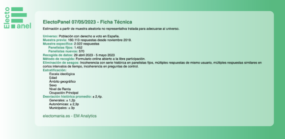 ElectoPanel semanal para elecciones generales, que será difundido este domingo parcialmente en abierto y al completo para nuestros patrones: