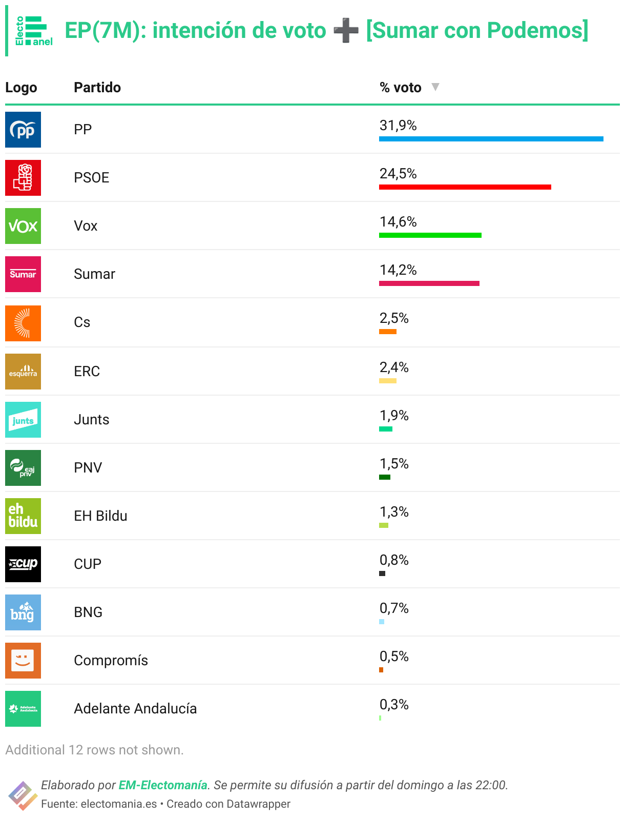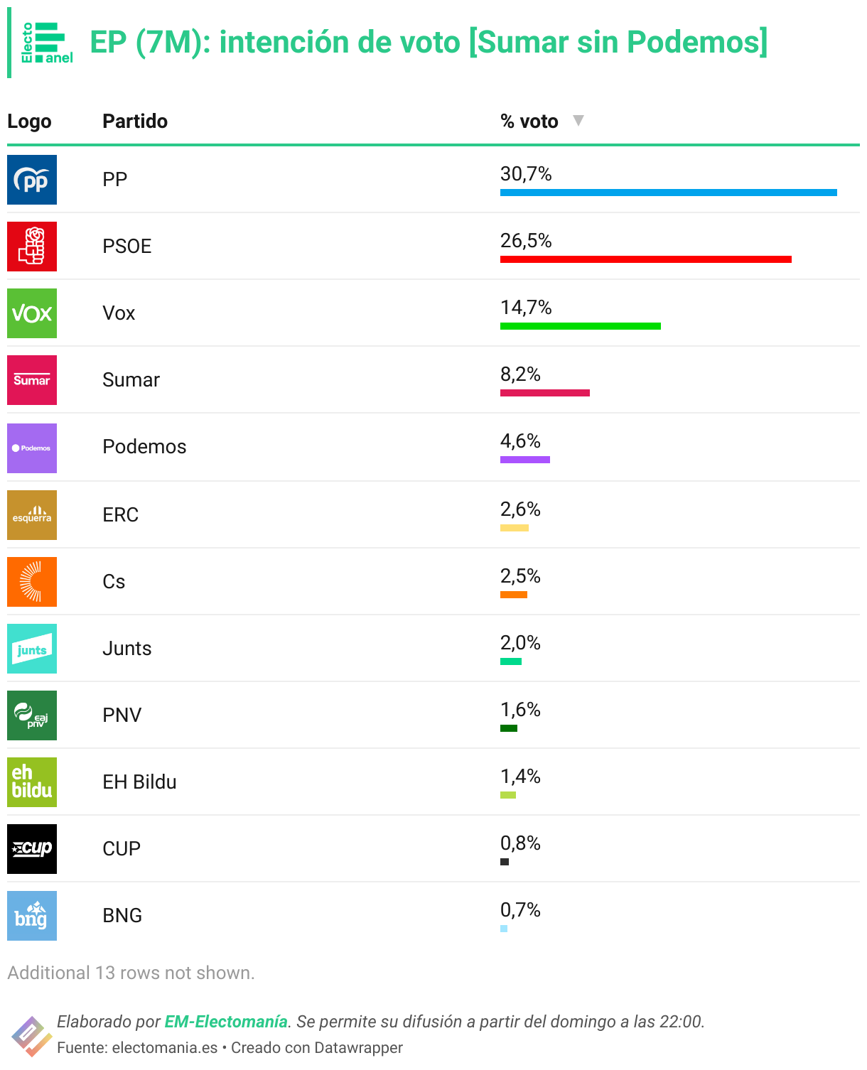 ElectoPanel (7M): Yolanda Díaz pierde fuelle sin Podemos