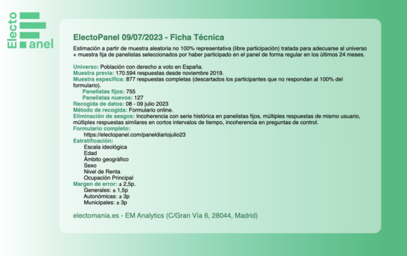 ElectoPanel para generales, ofrecido a diario y con acceso al desglose completo de voto y escaños por provincias para patrones, y en abierto en días alternos con acceso a los datos por bloque.