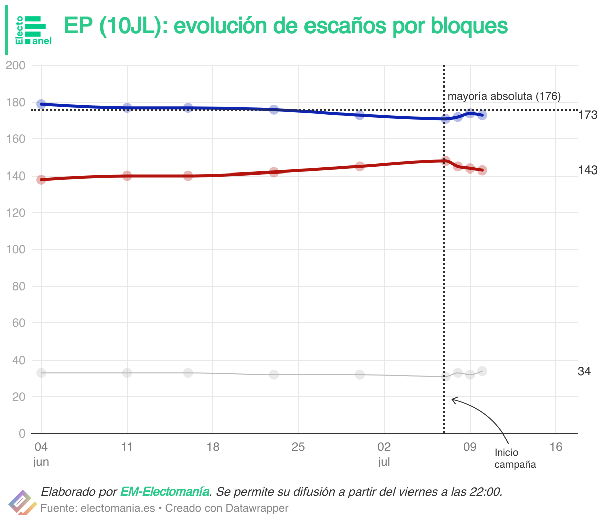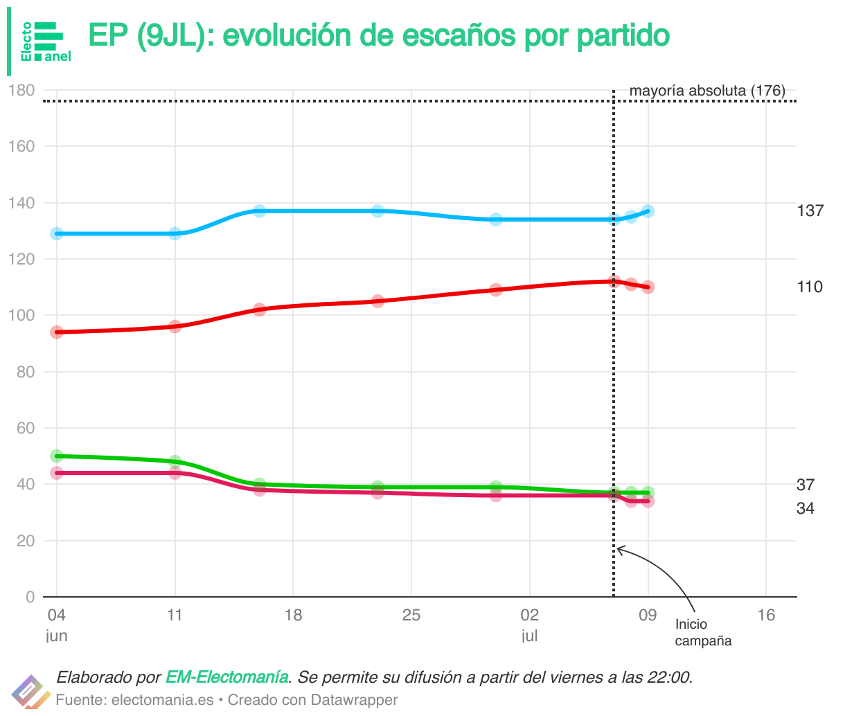 ElectoPanel para generales, ofrecido a diario y con acceso al desglose completo de voto y escaños por provincias para patrones, y en abierto en días alternos con acceso a los datos por bloque.