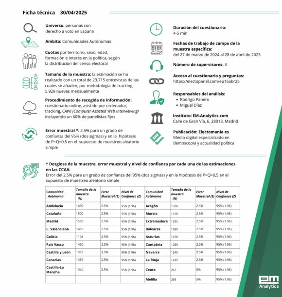 ElectoPanel autonómico para Andalucía, difundido en abierto, que forma parte del especial autonómico mensual exclusivo para patrones.