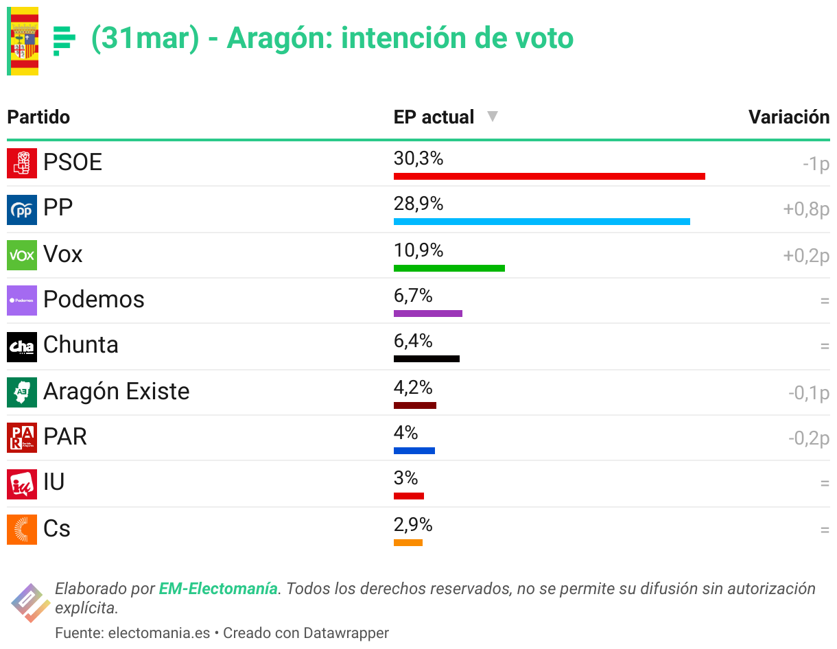 ElectoPanel para elecciones autonómicas en la Comunidad de Aragón, que forma parte del especial que se publicará esta tarde en exclusiva para patrones: