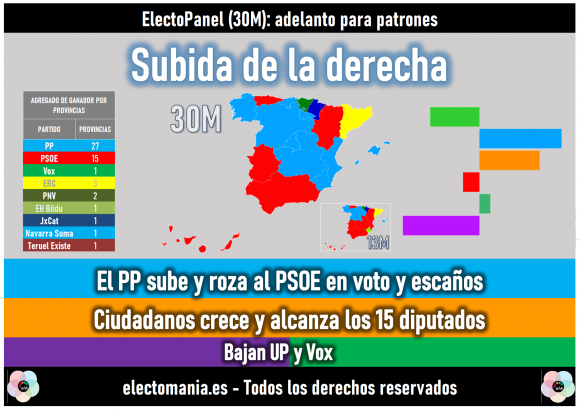 Beneficios exclusivos: Acceso completo: adelanto de los paneles horas antes de su publicación en abierto, panel para generales: (desglose de escaños y voto por provincias y partidos, mapa del partido ganador por provincias), electoPanel autonómico quincenal exclusivo, sección exclusiva para Patrones en El Foro y electoPanel especial VIP mensual exclusivo.