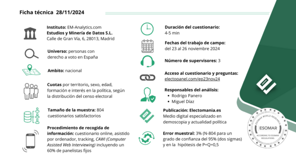 Adelanto del ElectoPanel extra para generales de mitad de semana (en compensación al de la primera semana de mes, que no se publicó con motivo del duelo por las víctimas de la DANA). Será publicado parcialmente en abierto este jueves.