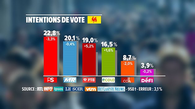 En Valonia 🐓 triunfo de los socialdemócratas 🌹 con la izquierda radical 🔻 rozando el sorpasso.