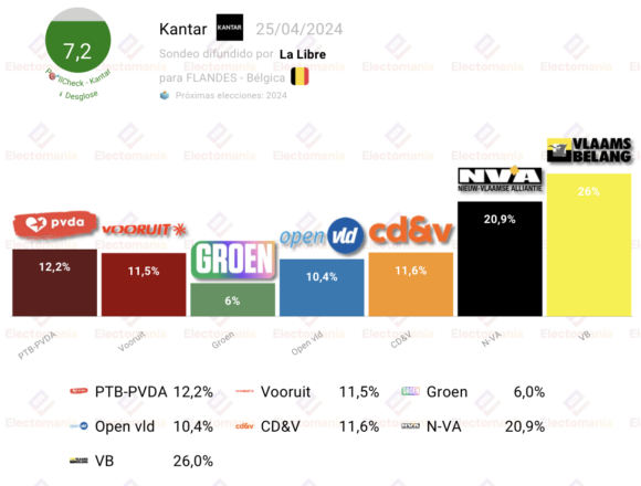Encuesta Bélgica (Kantar 25abr): un parlamento ingobernable