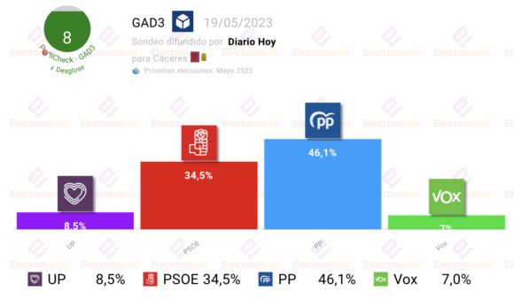 Sondeos de GAD3 para elecciones municipales en Cáceres y Badajoz, difundidos por el diario HOY: